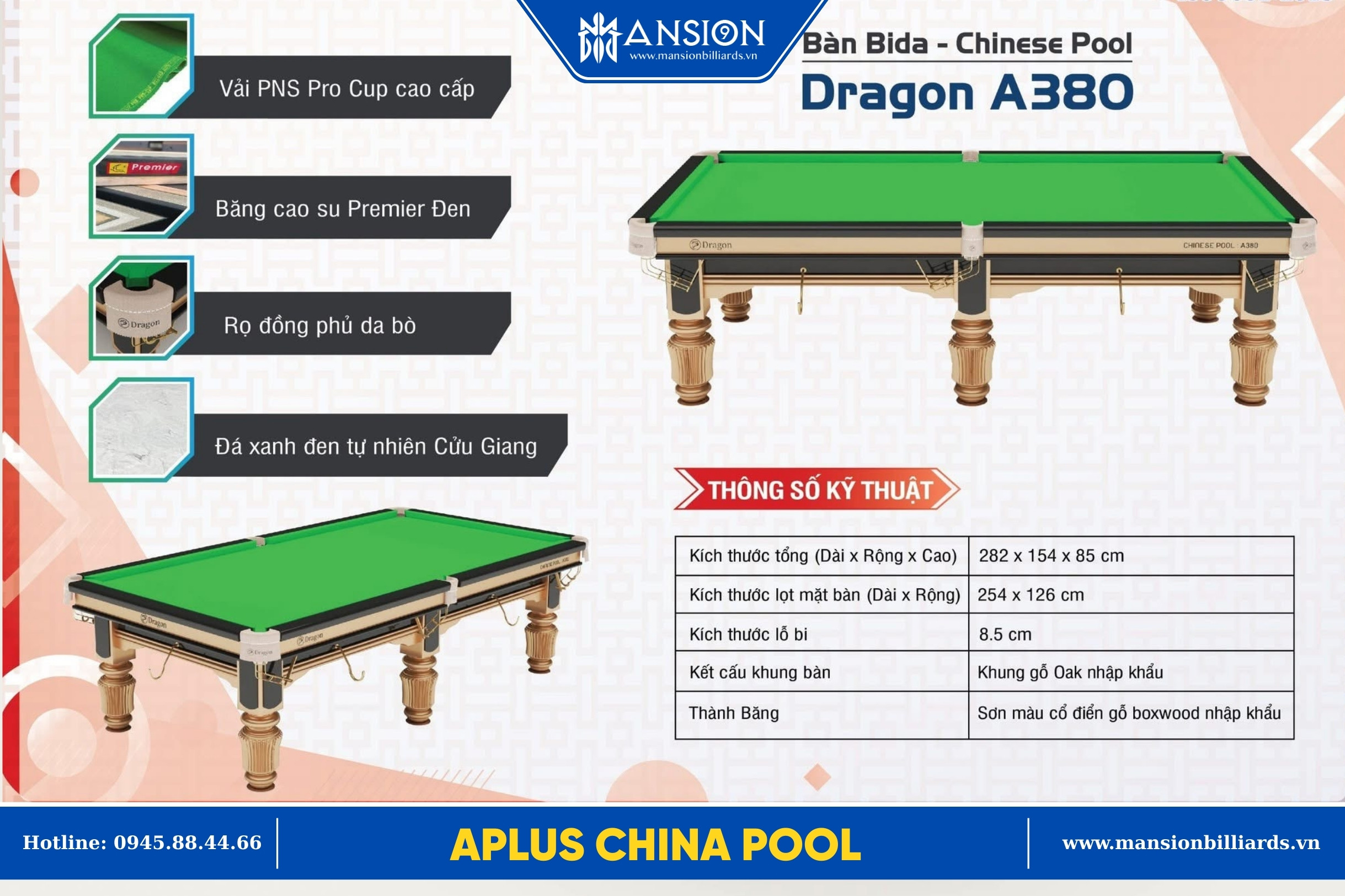 Aplus Dragon A380 | Bàn bida China Pool | Chính hãng