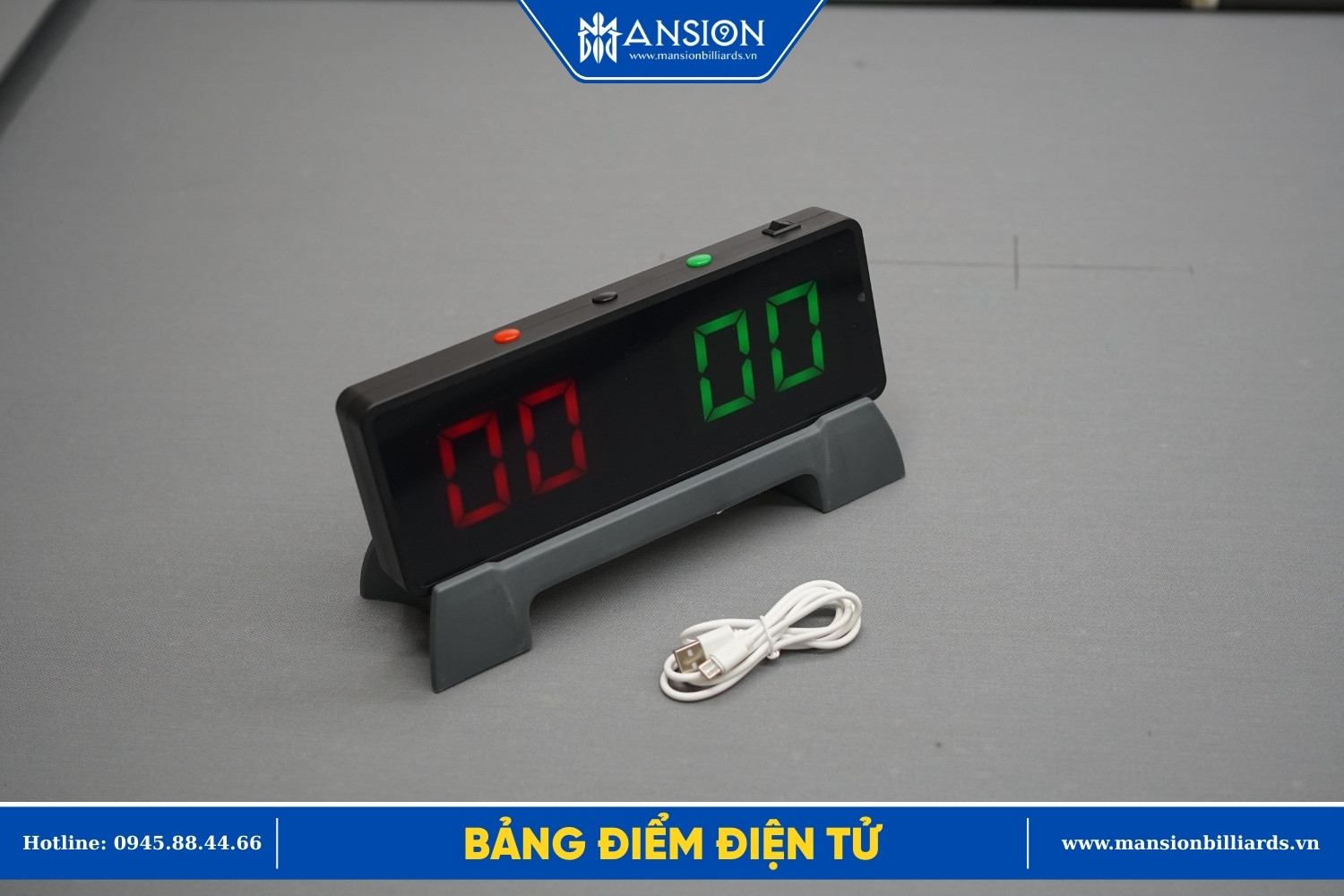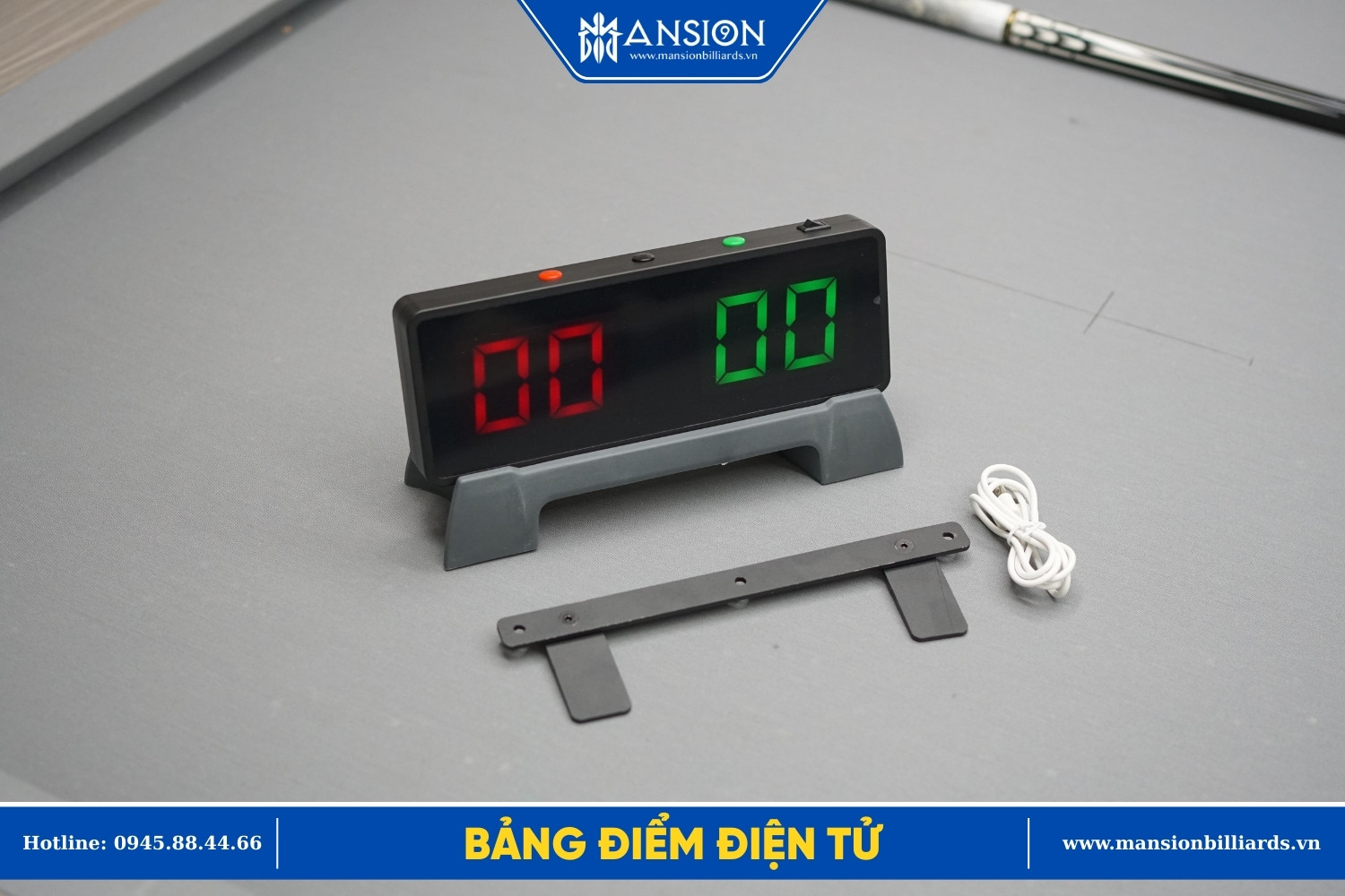 Bảng điểm điện tử bida Mansion là sản phẩm mới 206 với thiết kế nhỏ gọn, sử dụng tính điểm cho 2 người chơi. Bảng điểm bida có thể sạc trong 3-4 giờ và sử dụng liên tục 72 giờ. Khách hàng cũng có thể cắm điện trực tiếp để sử dụng liên tục.