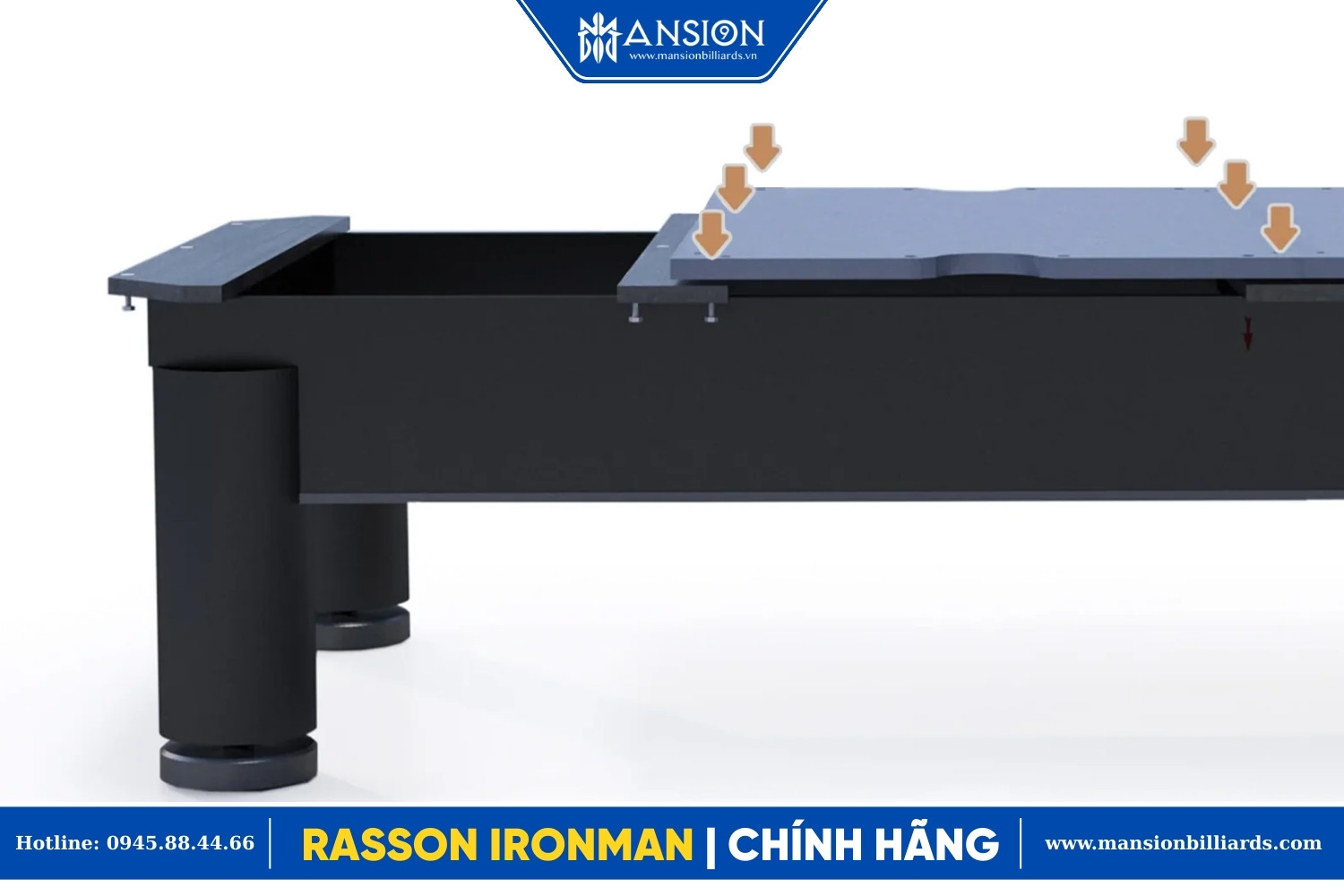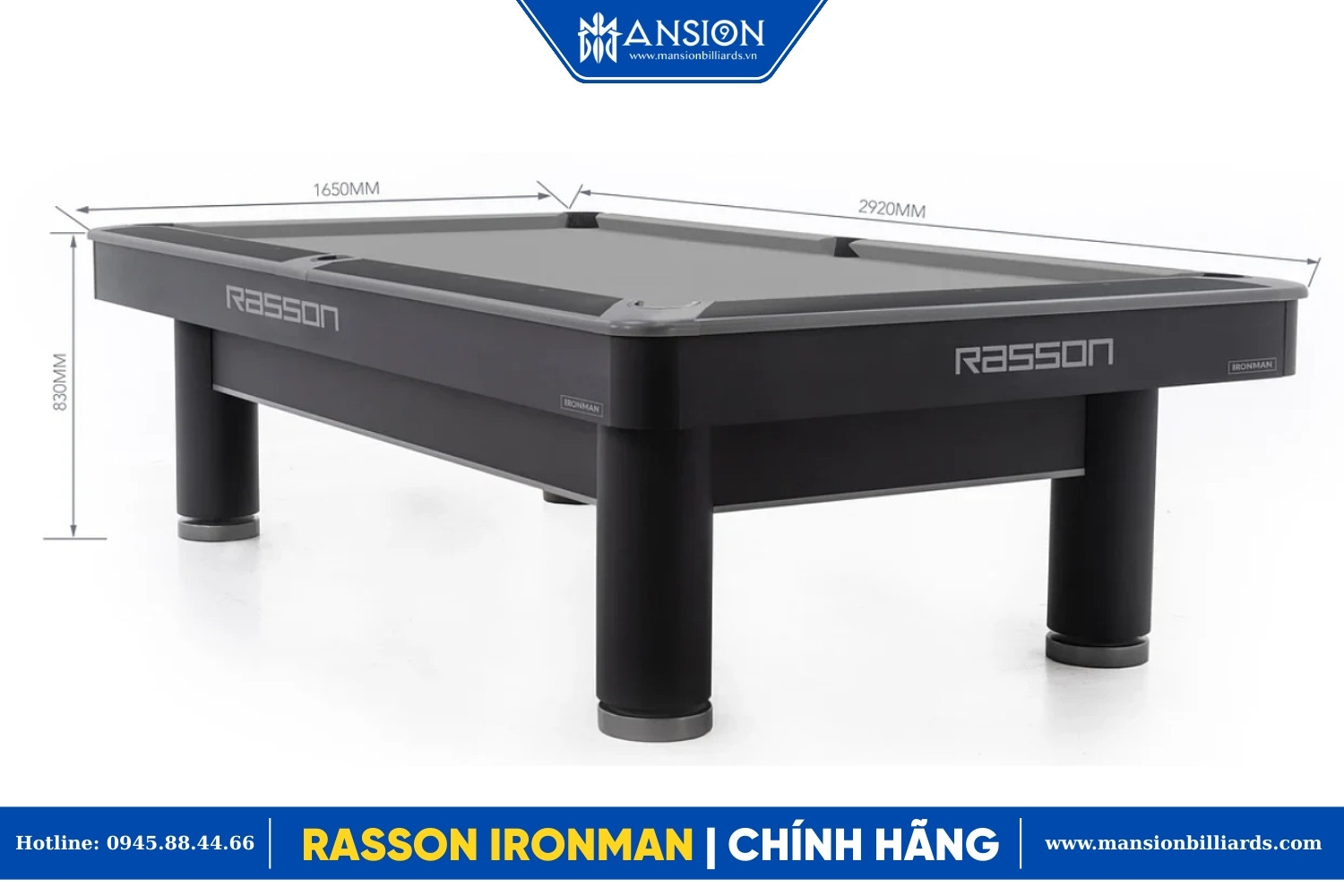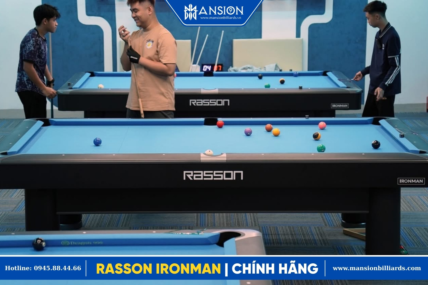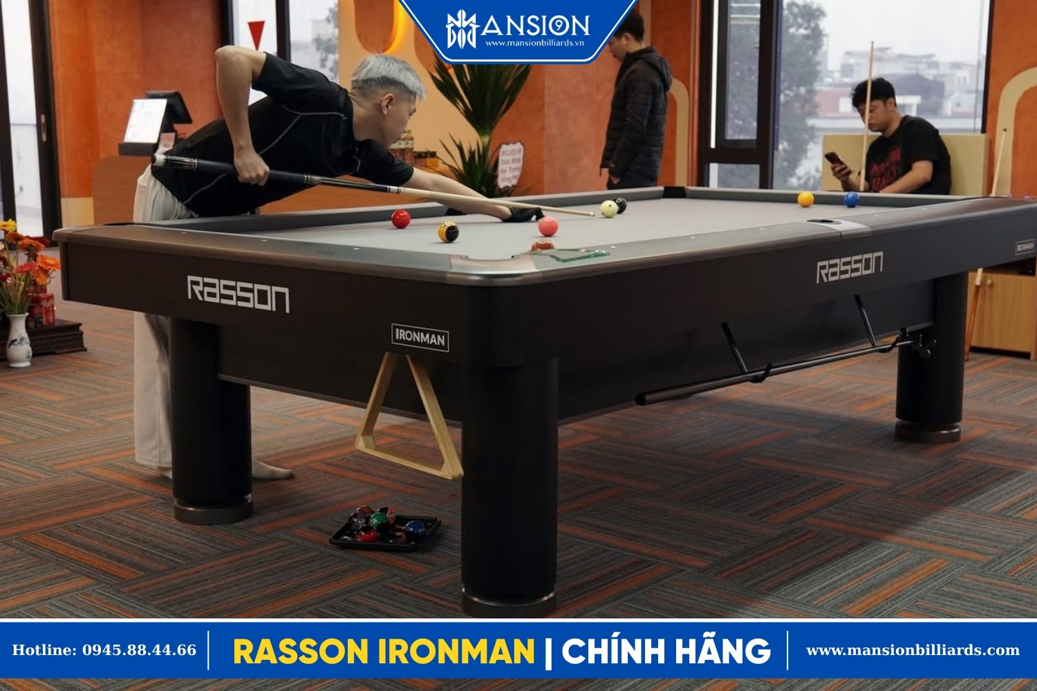 Đúng như tên gọi “Người sắt”, Rasson Ironman là dòng bàn bida pool chuyên nghiệp được thiết kế để chịu đựng cường độ khai thác cao tại các CLB. Với khung gầm thép vững chắc và hệ thống chân đế mạnh mẽ, Ironman đảm bảo sự ổn định tuyệt đối, không rung lắc trong suốt quá trình thi đấu.