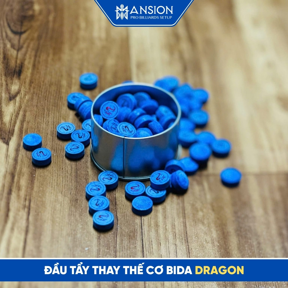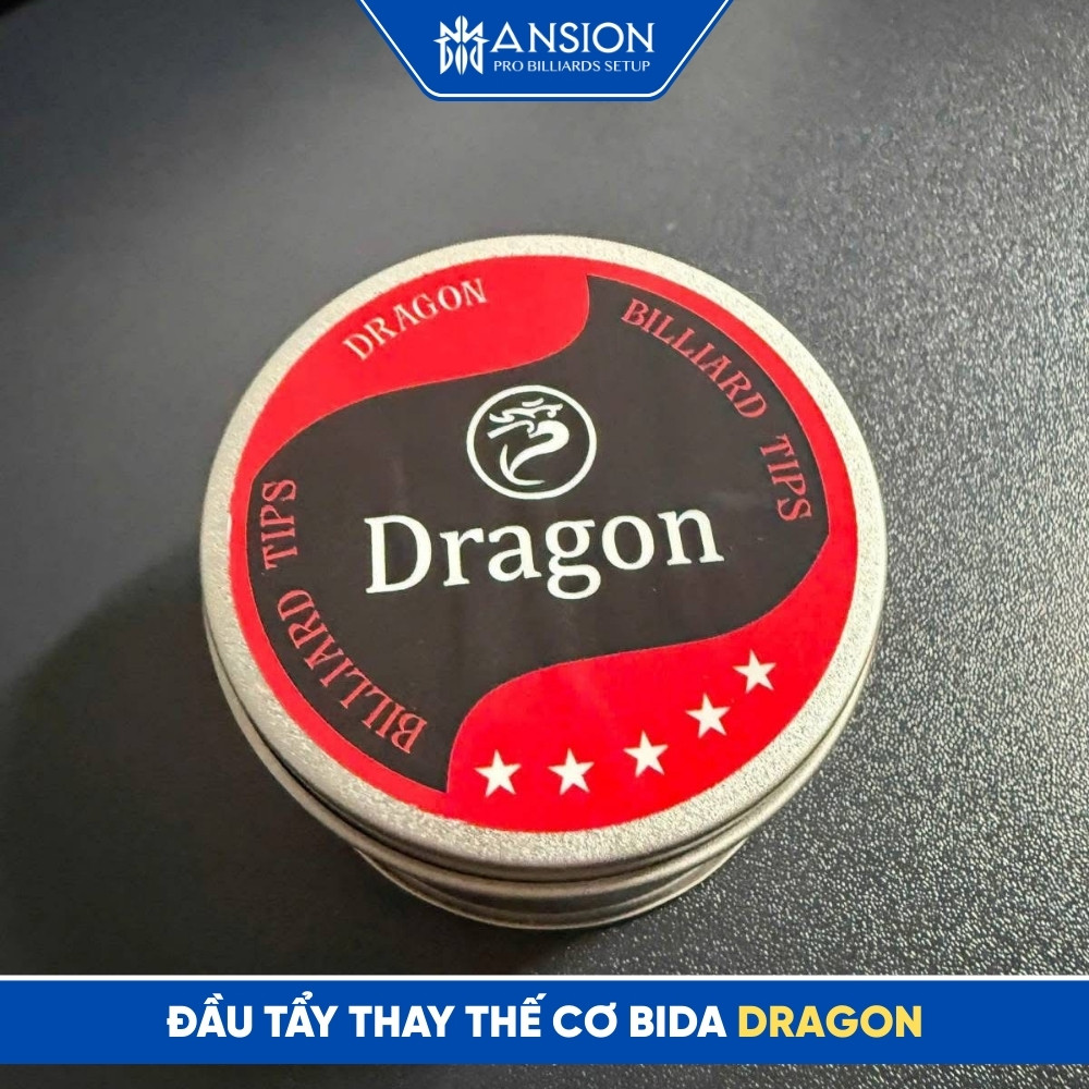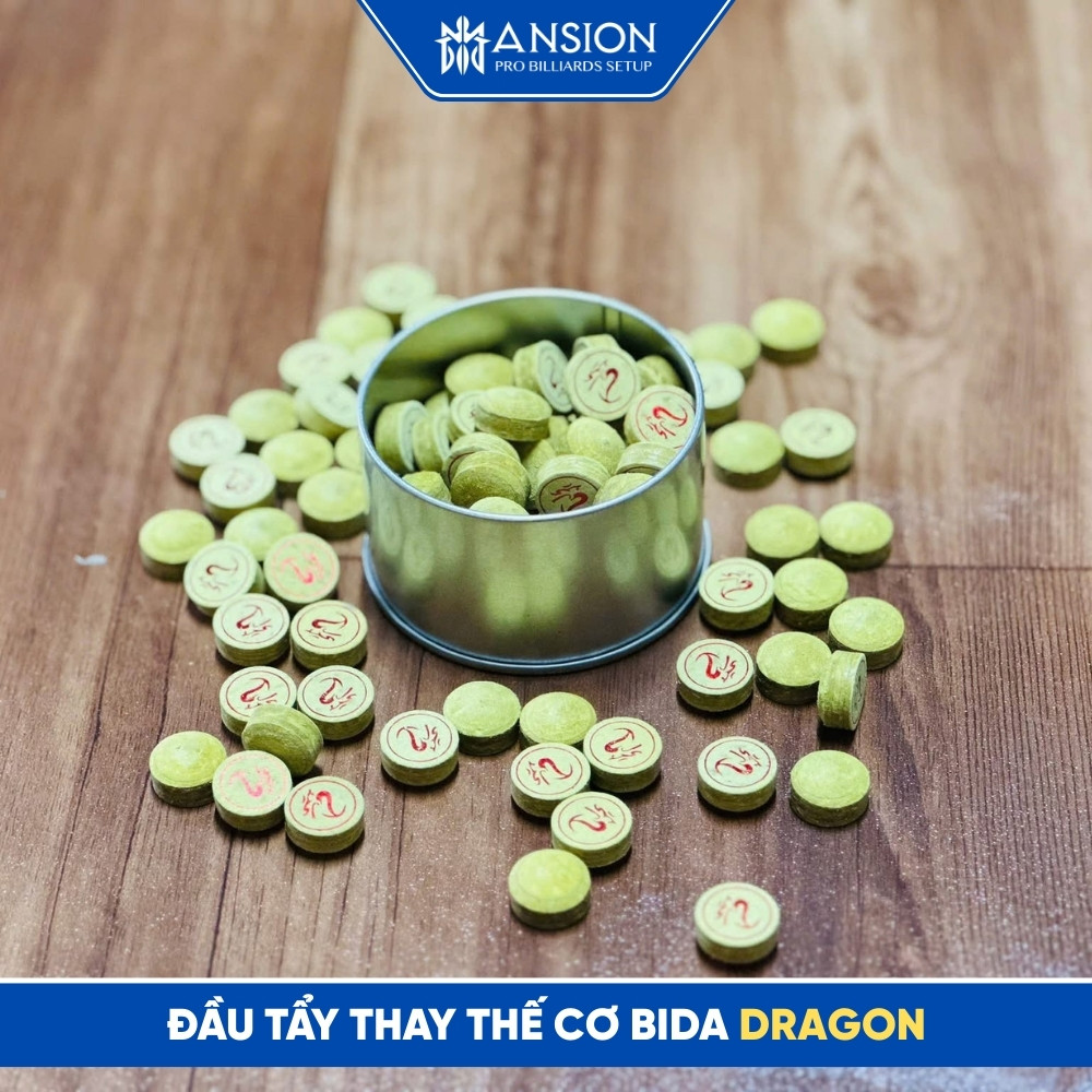 Đầu tẩy Dragon thay thế là dòng phụ kiện cao cấp chuyên dụng cho ngọn gậy bida, được các cơ thủ chuyên nghiệp tin dùng nhờ độ ổn định và cảm giác bóng cực tốt. Được chế tác từ nhiều lớp da heo/da bò tuyển chọn, qua quy trình nén áp suất cao, đầu tẩy Dragon mang lại độ cứng đồng nhất và khả năng truyền tải lực tuyệt vời.