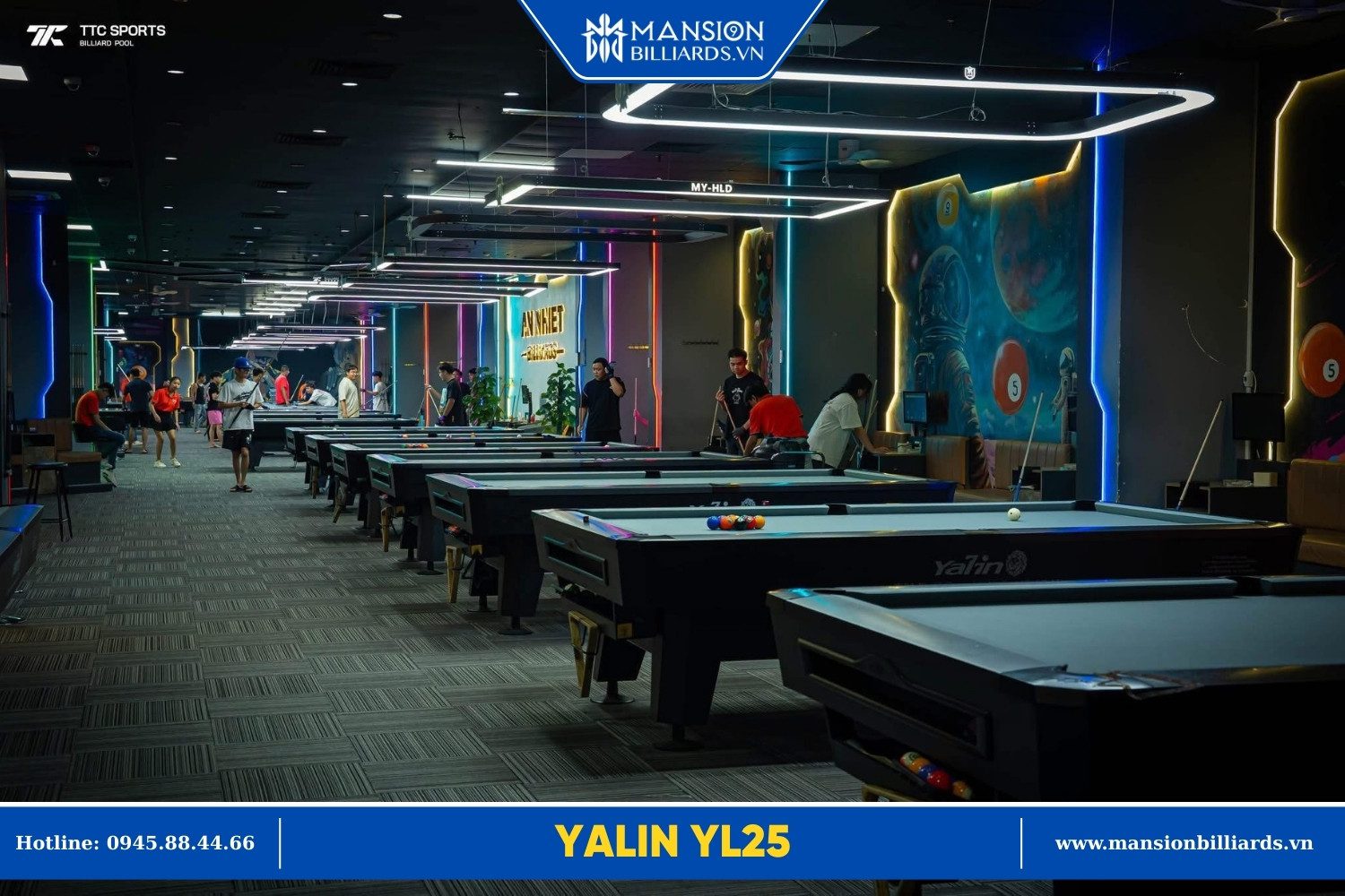 Yalin YL25 là mẫu bàn bida chính hãng thuộc dòng kinh doanh của Yalin Billiards, thương hiệu bàn bida quốc tế sản xuất tại Trung Quốc. Sở hữu thiết kế chắc chắn, mặt đá tiêu chuẩn 3,5cm và rail ổn định. Đây là lựa chọn phù hợp cho phòng bida thương mại, câu lạc bộ giải trí và người chơi yêu cầu chất lượng ổn định theo thời gian.